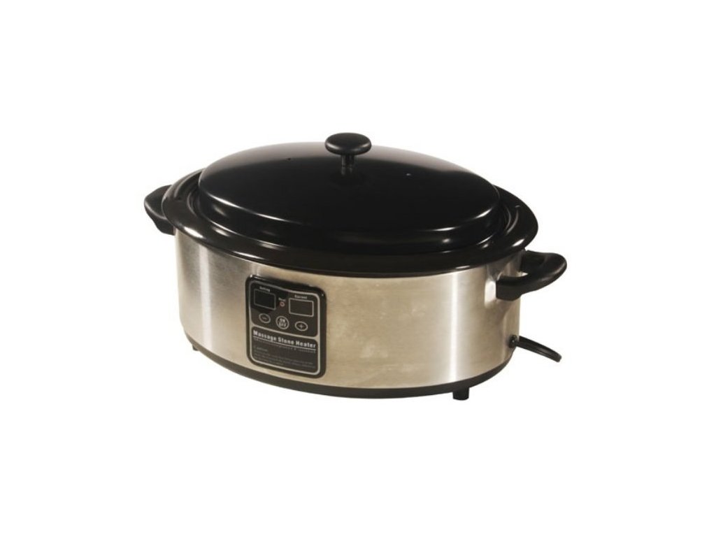 Hot Stones to średniej wielkości urządzenie grzewcze o wymiarach zewnętrznych 38 x 18 x 28 cm i pojemności 6 litrów. Podgrzewacz do kamieni lawowych jest wyposażony w czytelny wyświetlacz i cyfrową kontrolę temperatury. Obsługa urządzenia jest prosta, wyświetlacz pokazuje aktualną i zadaną temperaturę wody. Temperaturę można nastawić w przedziale 40-70 st. C. Średnie urządzenie grzewcze Hot Stones ma funkcję wstępnego podgrzewania, a także zawiera czerpak do bezpiecznego wyjmowania kamieni lawowych z gorącej wody.