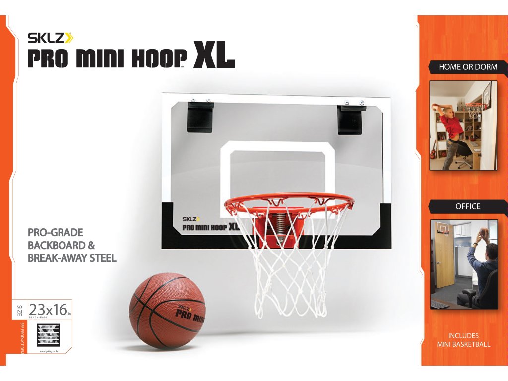 SKLZ Pro Mini Hoop XL oferuje taką samą jakość i wygląd jak oryginalny Pro Mini Hoop, ale z większą tablicą. Tylna płyta wykonana jest z wytrzymałego poliwęglanu i zawiera zdejmowaną stalową obręcz. Profesjonalny wygląd kosza pasuje do Twojego domu, mieszkania czy biura.