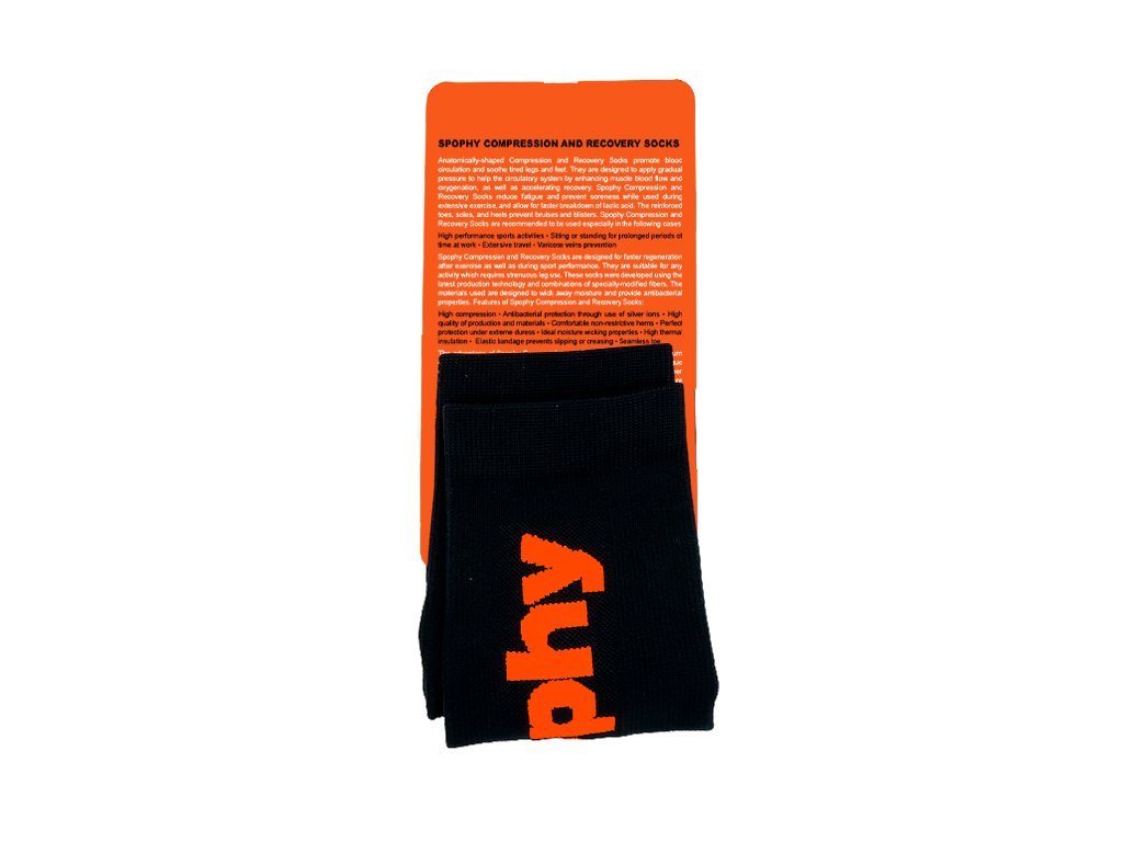 Skarpety Spophy Compression and Recovery Socks przeznaczone są do szybszej regeneracji po obciążeniu sportowym oraz podczas uprawiania sportu. Wykorzystując najnowsze technologie w produkcji oraz kombinację specjalnie obrabianych włókien, powstają kompresyjne podkolanówki, które charakteryzują się: