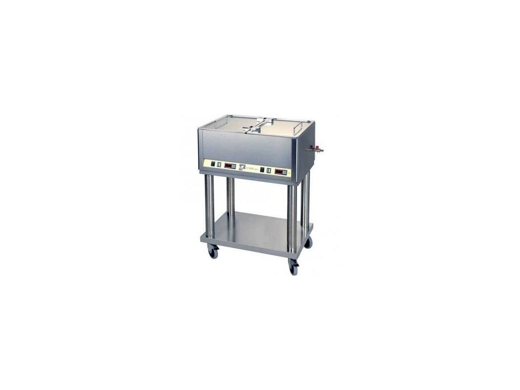 Profesjonalne urządzenie ze stali nierdzewnej do ekonomicznego podgrzewania borowinowych nośników ciepła potrzebnych do aplikacji jednorazowego okładu borowinowego lub do podgrzewania parafiny leczniczej. Dzięki oddzielnie regulowanym pojemnikom, urządzenie może być używane wielofunkcyjnie. Oba pojemniki mają własny cyfrowy termostat i mogą być obsługiwane oddzielnie. Istnieje zatem możliwość wykorzystania urządzenia do podgrzewania parafiny i jednoczesnego podgrzewania borowinowych nośników ciepła w drugiej komorze lub obsługi dwóch łóżek oddzielnie w ramach stosowania okładu borowinowego. Do mniejszych placówek polecamy model Combi 200. Wanna posiada kratkę ochronną na dnie pojemnika oraz zawór spustowy wody, który można podłączyć bezpośrednio do węża odpływowego. Urządzenie można postawić na płaskiej, niepalnej powierzchni lub można dokupić praktyczną, mobilną podstawę.